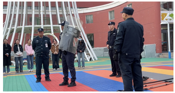 民警结合校园实际,以“理论讲解+实操演示”模式,重点传授防暴盾牌、钢叉等器械使用技巧,以及暴力事件中的疏散逃生、自救互救方法。保卫科人员与幼儿园教职工积极参与模拟演练,在实战场景中熟稔处置流程,强化了协同联动能力。