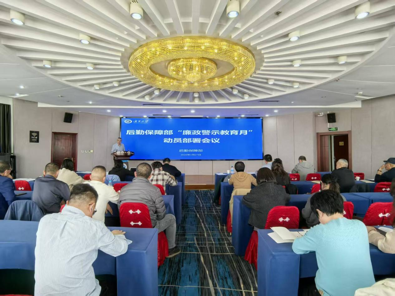 3月27日,后勤保障部召开“廉政警示教育月”动员部署会议,后勤保障部党委委员、党支部书记、各中心(科室)副科级以上干部、纪委委员、分工会主席、纪检委员参加此次会议。