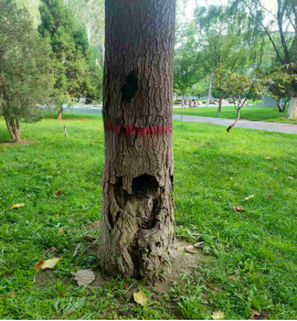 二、文萃校区生命科学学院北侧1棵泡桐树底部出现腐烂,遇大风、强降雨存在安全隐患,需移除。