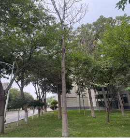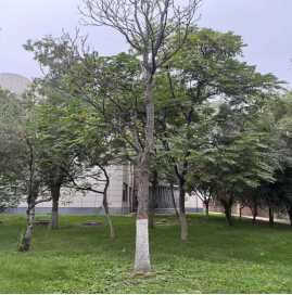 一、贺兰山校区德勤楼音乐学院东侧臭椿1棵、泡桐1棵,快递驿站北侧刺槐1棵、东门口南侧杨树13棵因病虫害破坏树木维管束系统,致使树木水分与养分传输受阻,最终枯竭死亡,存在安全隐患,需移除。